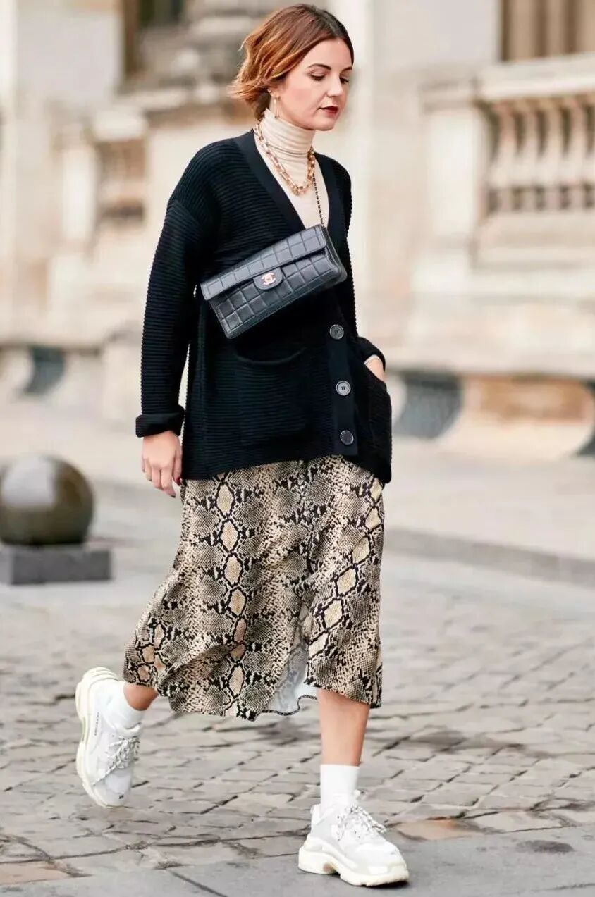 毛衣和高领打底衫不容易踩雷,比如深色+浅色,纯色+印花,既能保暖又不会显胖。