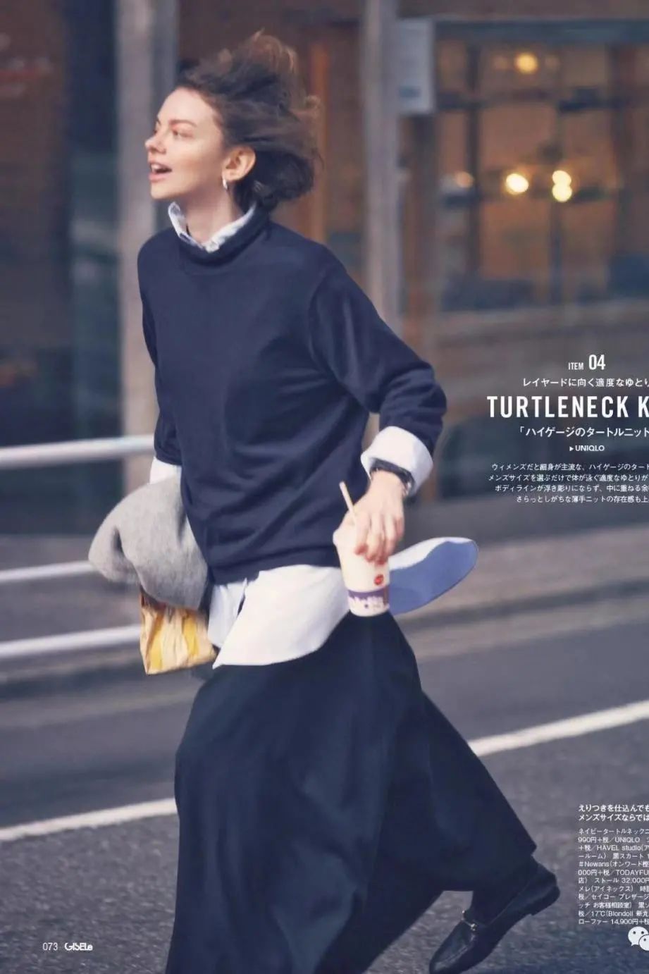 没有荷叶边的小高领也没关系,我们最基本的高领打底衫也可以和毛衣叠穿,舒适保暖。