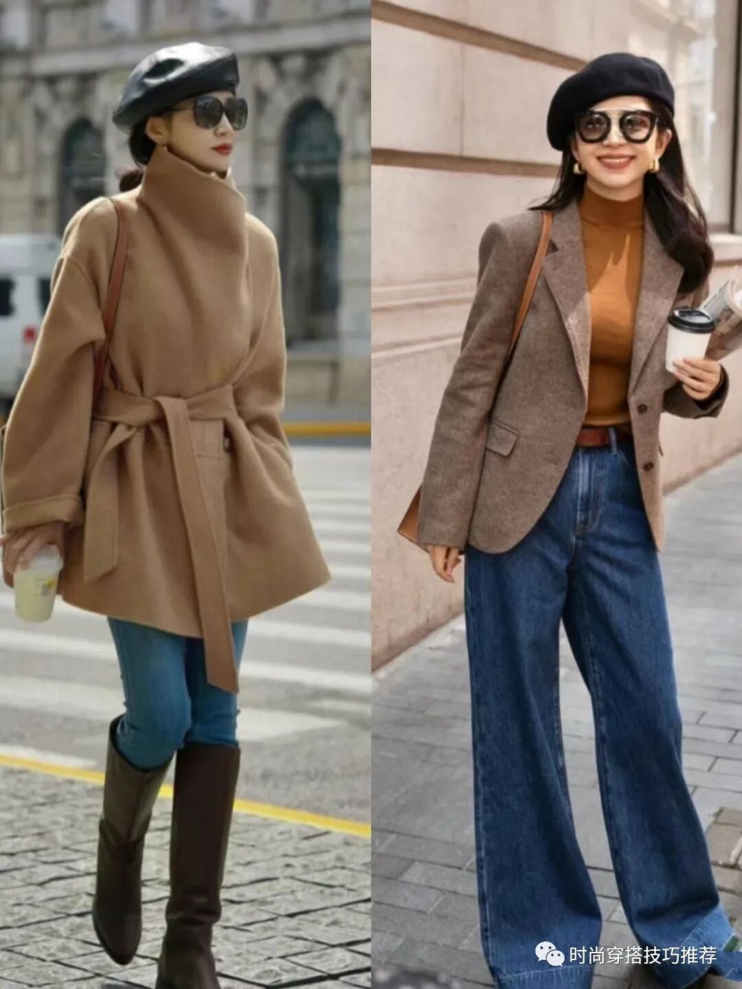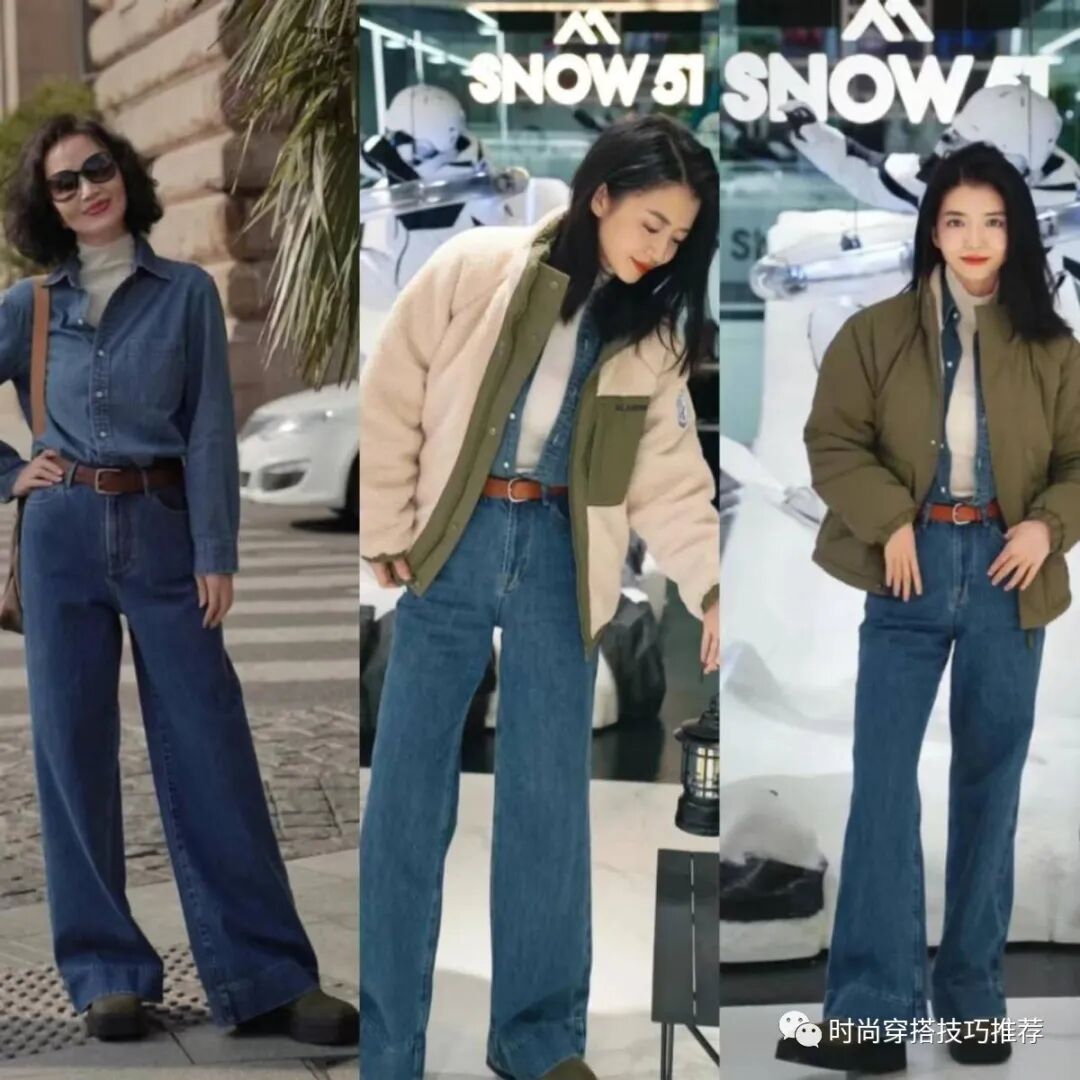 牛仔衬衫搭配牛仔裤简单又减龄。在牛仔衬衫中加入高领打底衫既舒适又有层次感。穿外套和羽绒服没问题,温度和风度并存。这一叠穿的思路出现在三木和三木妈妈的穿着中,完全不挑年龄。三、这些穿搭公式值得学