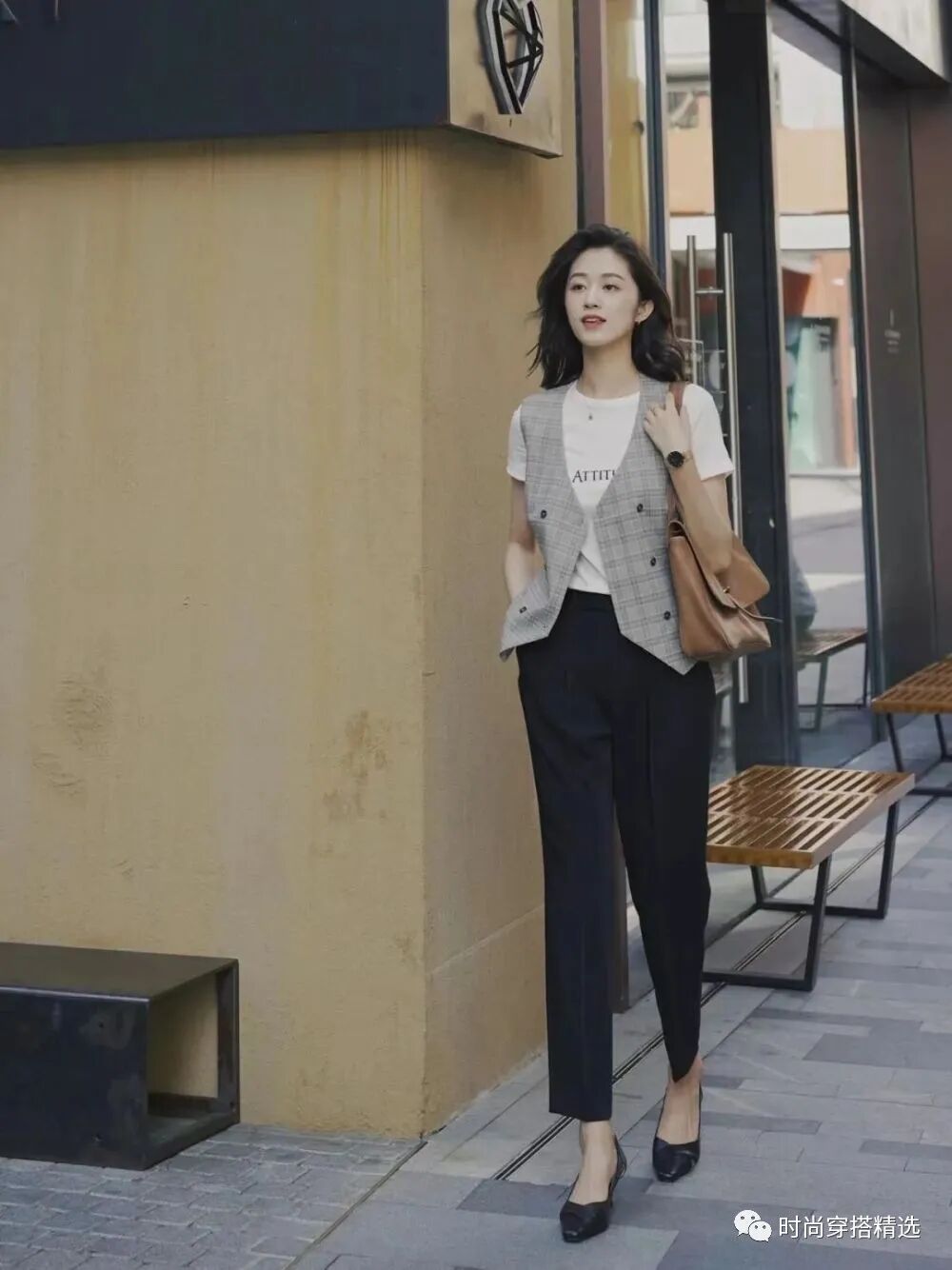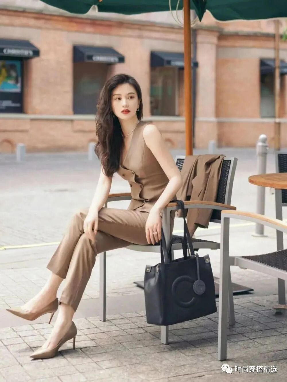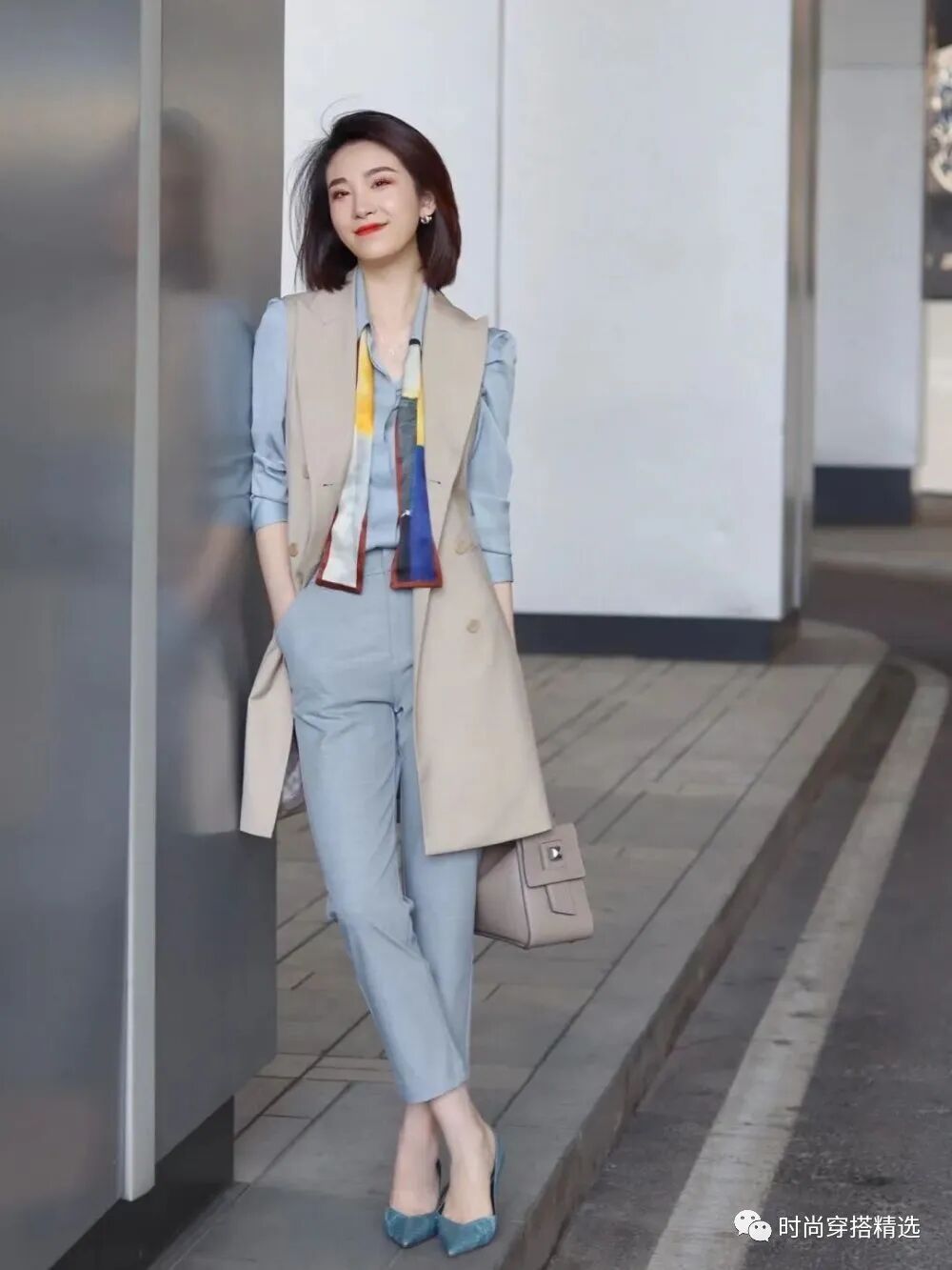 西装马甲大多是V字领设计,能够秀出颈线和锁骨、竖向延伸身形,在一定程度上还有显高的效果!