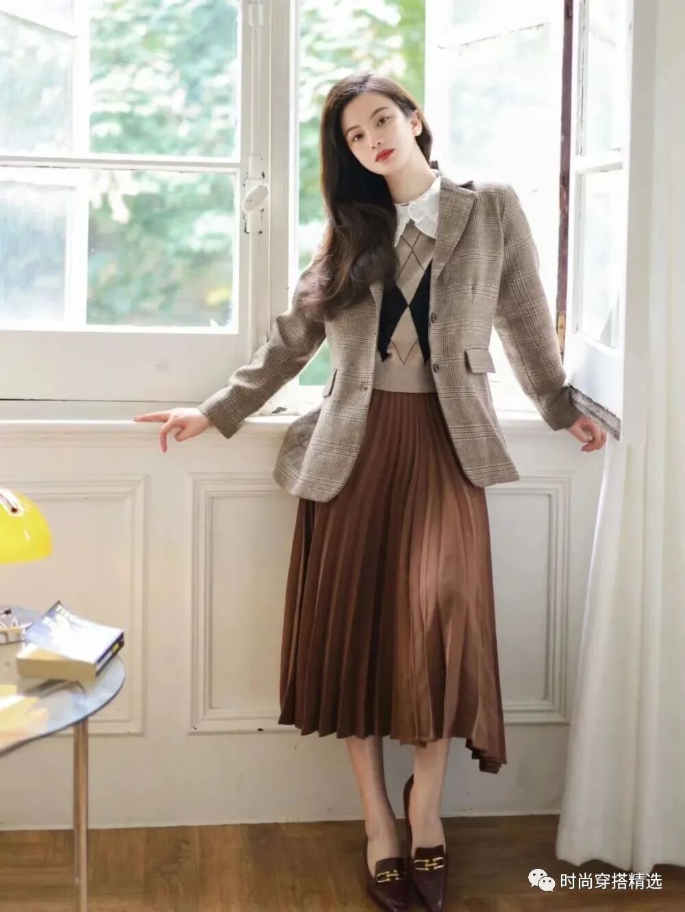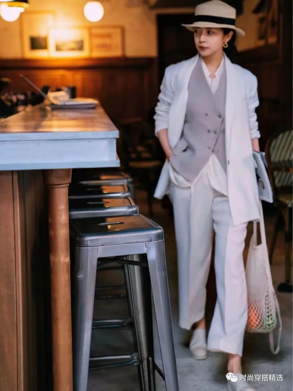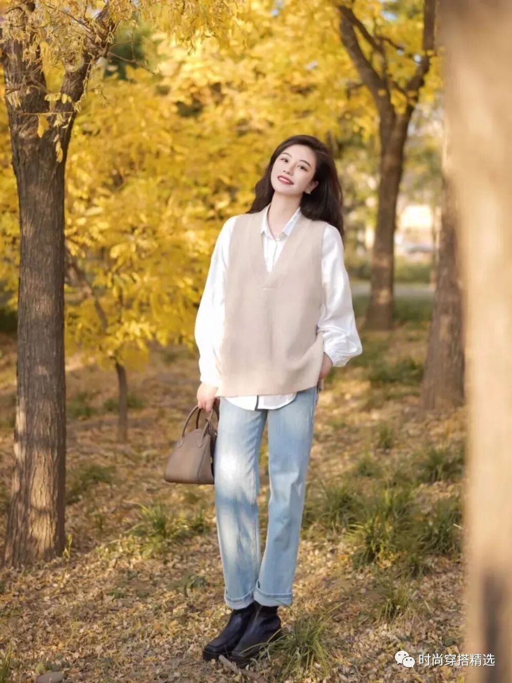 西装马甲大多是V字领设计,能够秀出颈线和锁骨、竖向延伸身形,在一定程度上还有显高的效果!