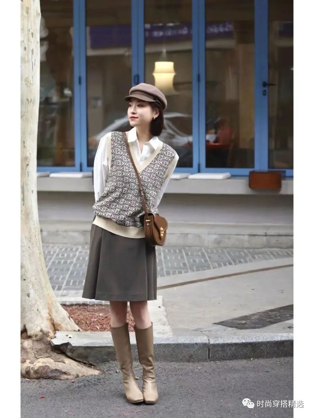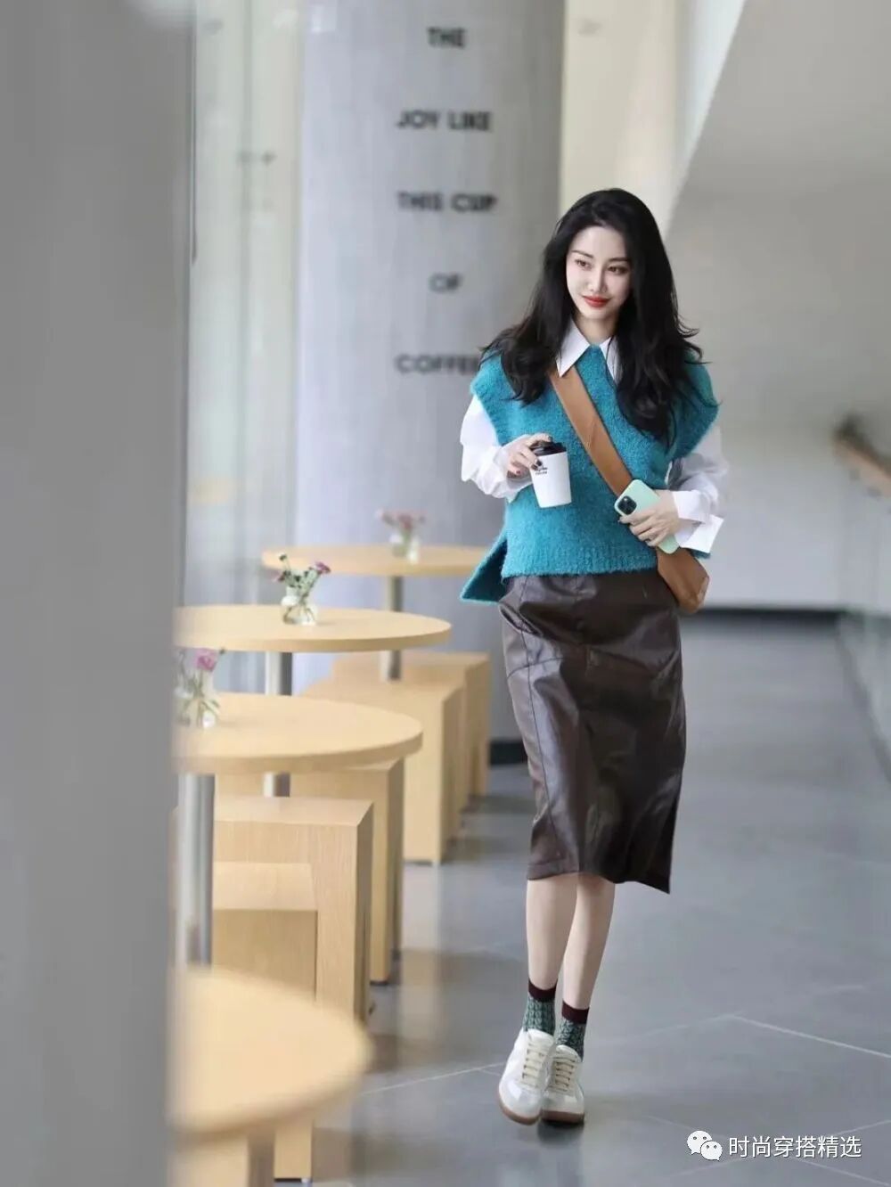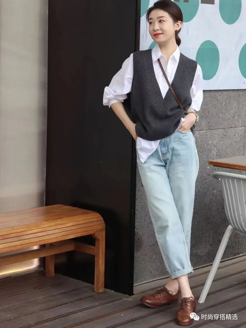 首先,我们分享的是短款毛衣马甲的穿搭,这样的毛衣加上一些漂亮的印花图案,可以说是自带亮点,大家可以选择叠穿一件纯白色的衬衫,这样的组合很是和谐好看,关键是利落的小短款,容易体现出高腰线,对女孩子的身材线条有修饰的作用,这样的组合好穿、不挑人。