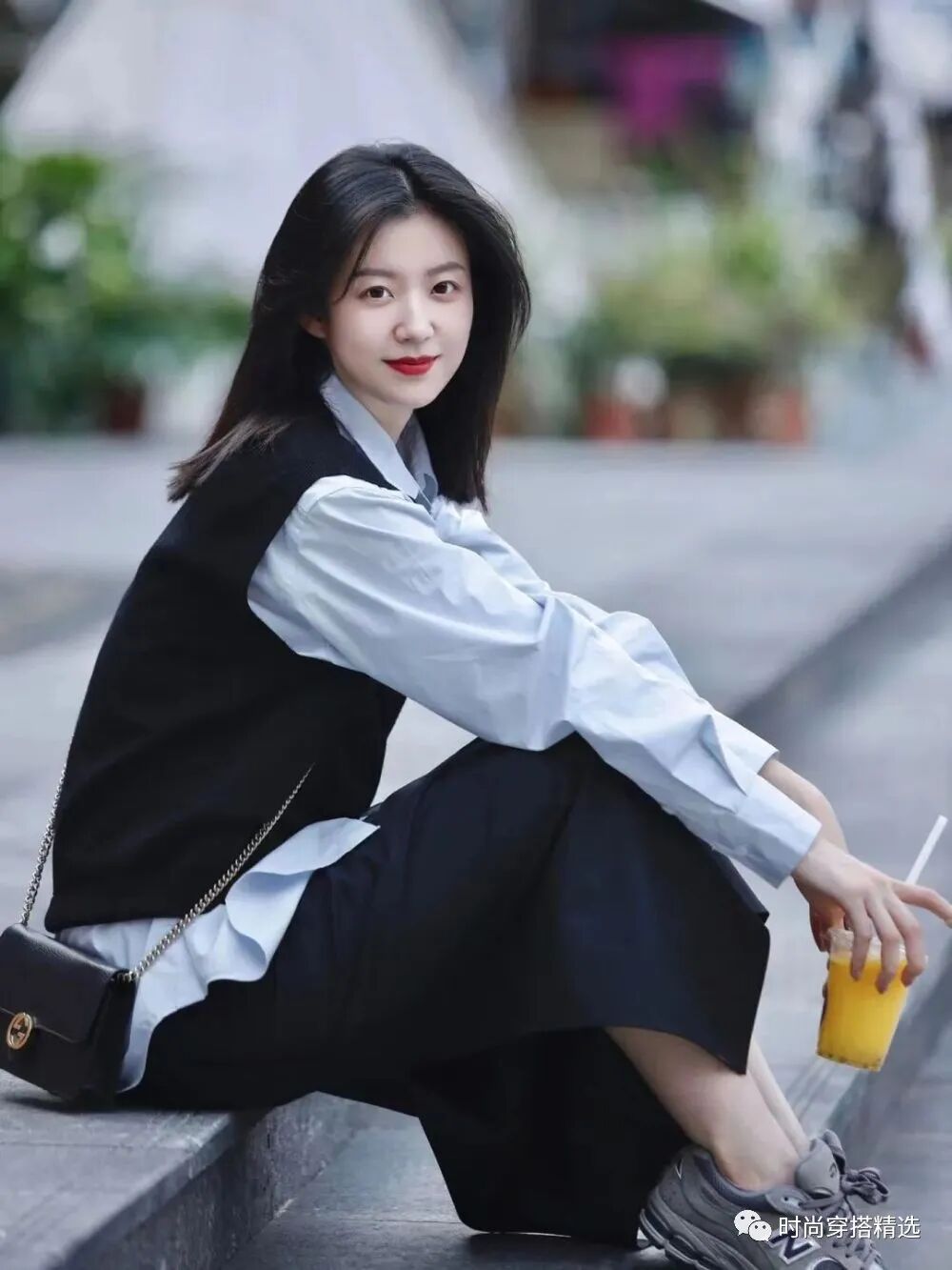 看惯了白色衬衫的“清汤寡水”,便选择了一件淡蓝色的衬衫来装饰自己,黑色的针织马甲是百搭的单品,与浅蓝色结合在一起,就是浓郁的校园气息,是清纯,是不谙世事。