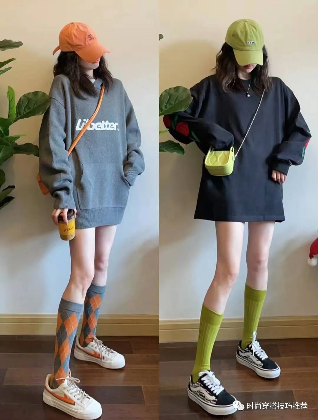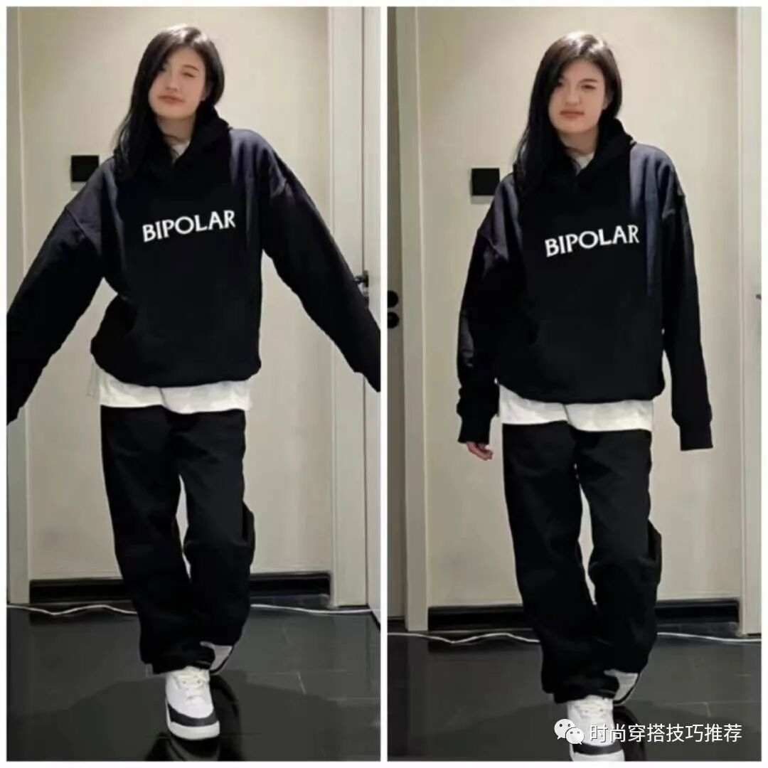 这套搭配简单又吸睛:宽松版型的黑色连帽卫衣,简单的白色字母图案,直接来个下身失踪穿搭,长度刚好遮盖住PP,搭配黑白拼色的球鞋直接出街。版权申明素材/网络,若有侵权请联系删除
