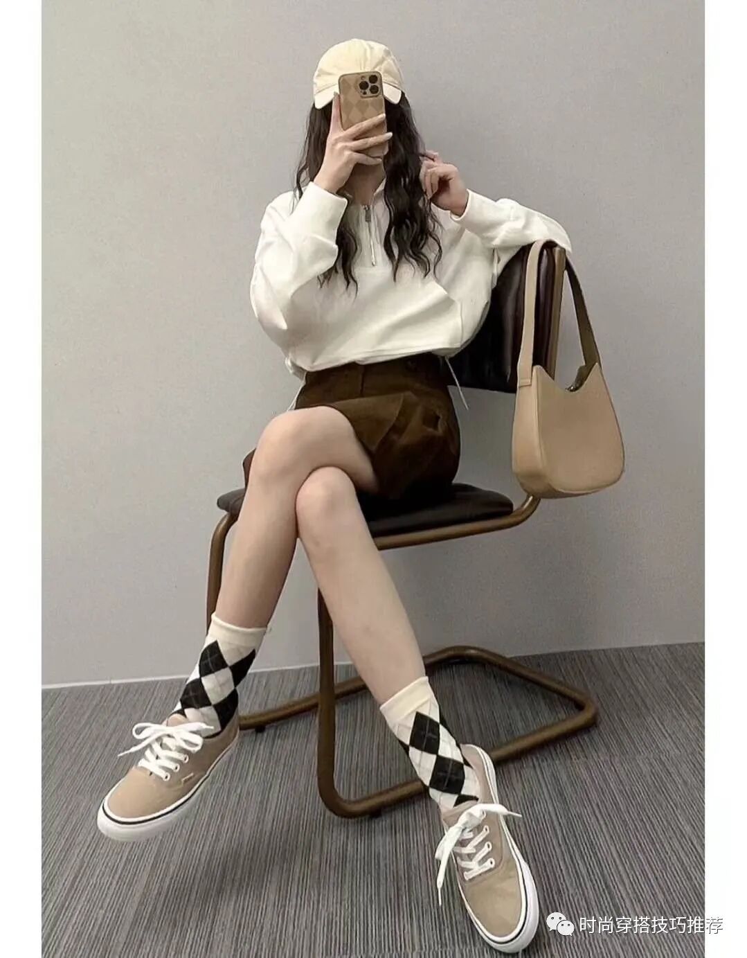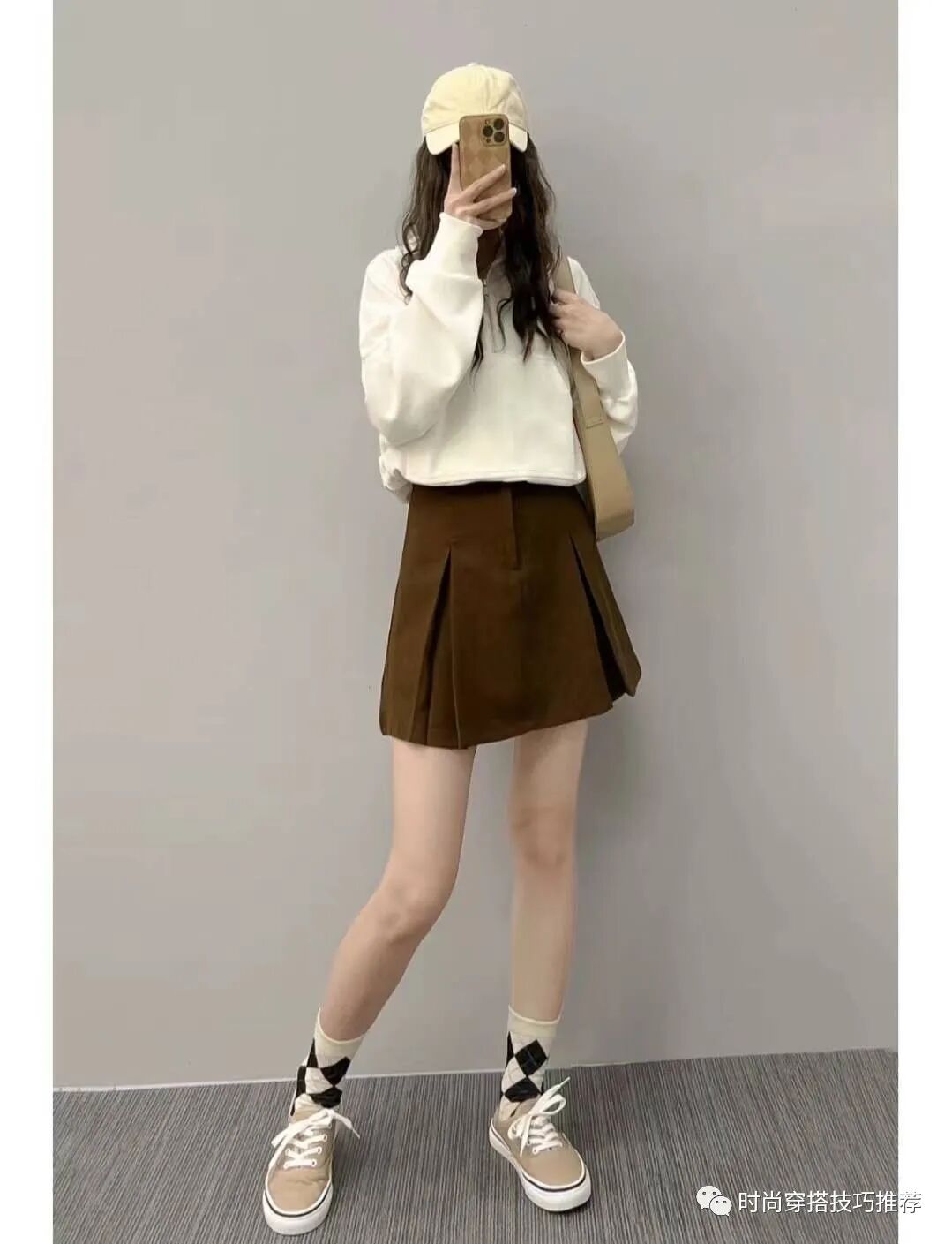 下衣失踪风,适合细长腿的女生,搭配中长款的袜子,上身保暖,下身露美腿,好看up。