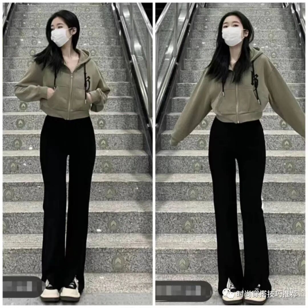 上短下长的搭配方式真的绝!短款卫衣太适合小个子女生和梨形身材了,连帽的休闲裤,搭配黑色高腰裤一整个拉长身材比例,显高显瘦显腿长。