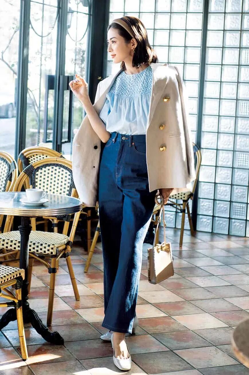 衬衫+牛仔阔腿裤可以说四季必穿“时髦担当”