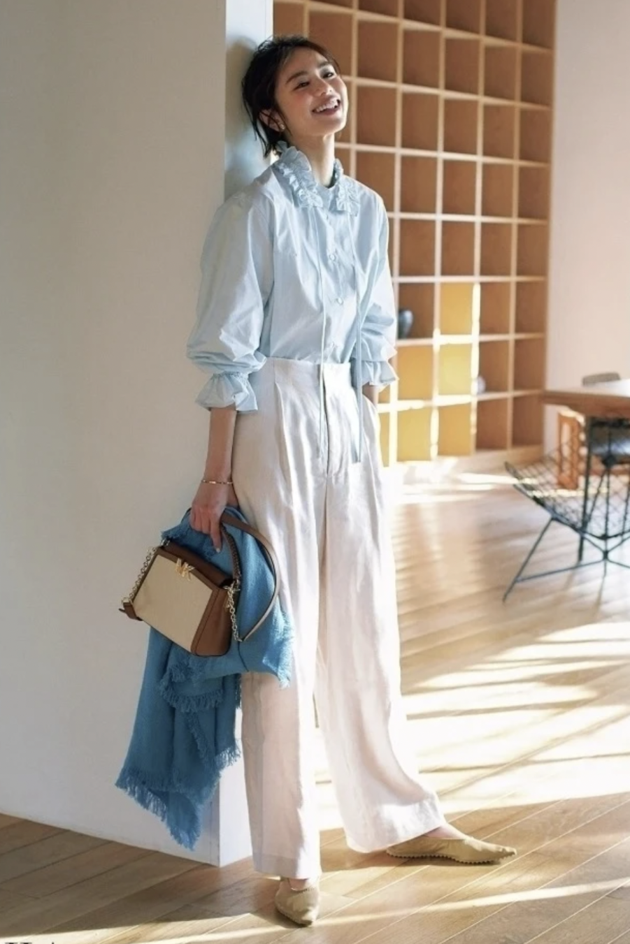 春天衬衫搭阔腿裤,简约好看显气质,每个女人最爱的搭配!(2)