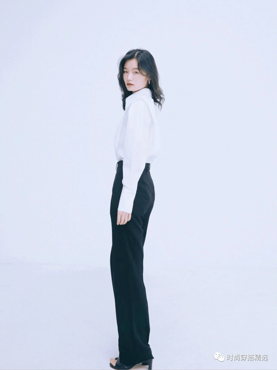 与白衬衣搭配的黑色西服拖地裤也是不错的选择,在穿出职业感的同时,也会给人一种强烈的气场感,简直太顶了。