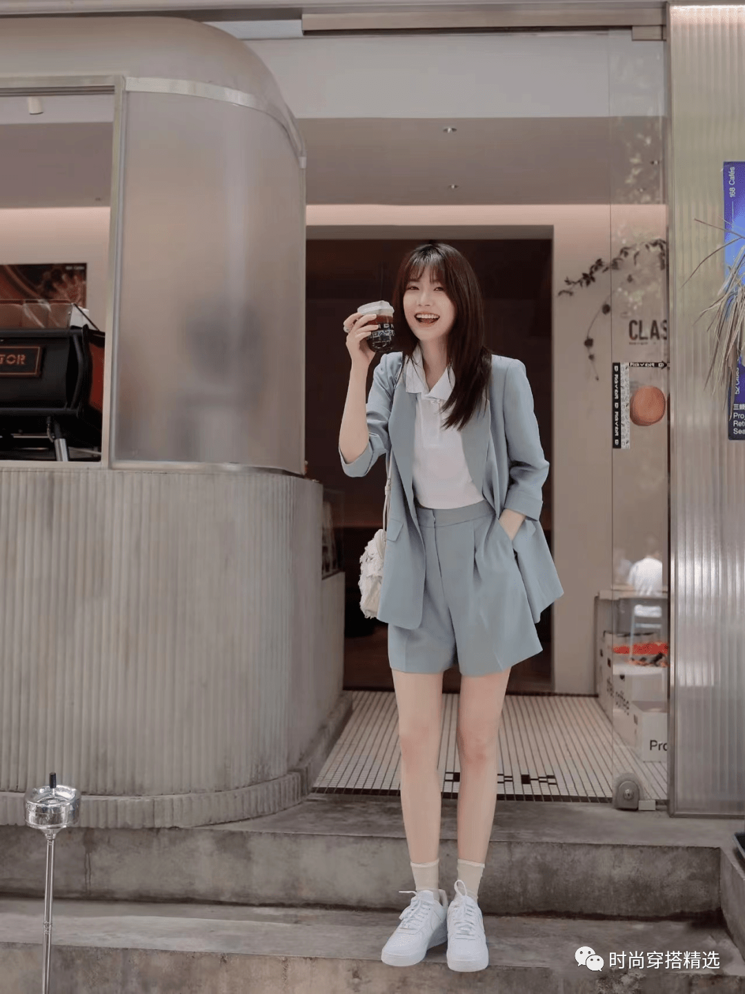 除西服外套外,还可与其它服装搭配短裤,如各种T恤、衬衣、衬衣、衬衣等,croptop、blouse等,这些都是不错的选择,有一条短裤的你一定会在这个夏天大放异彩。