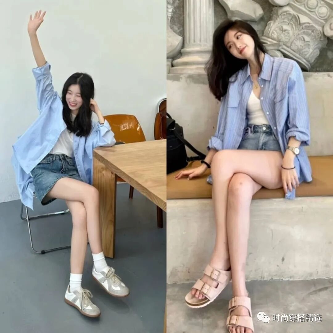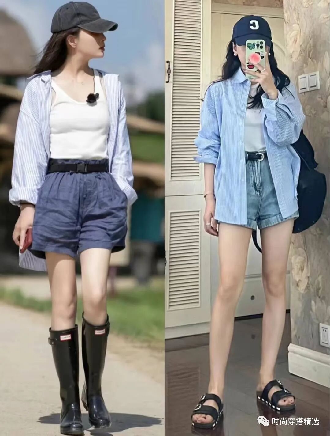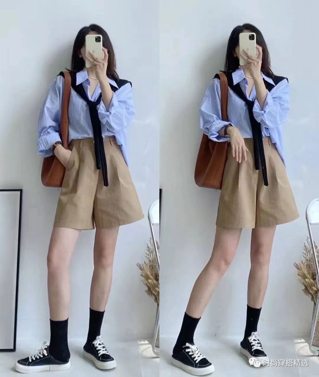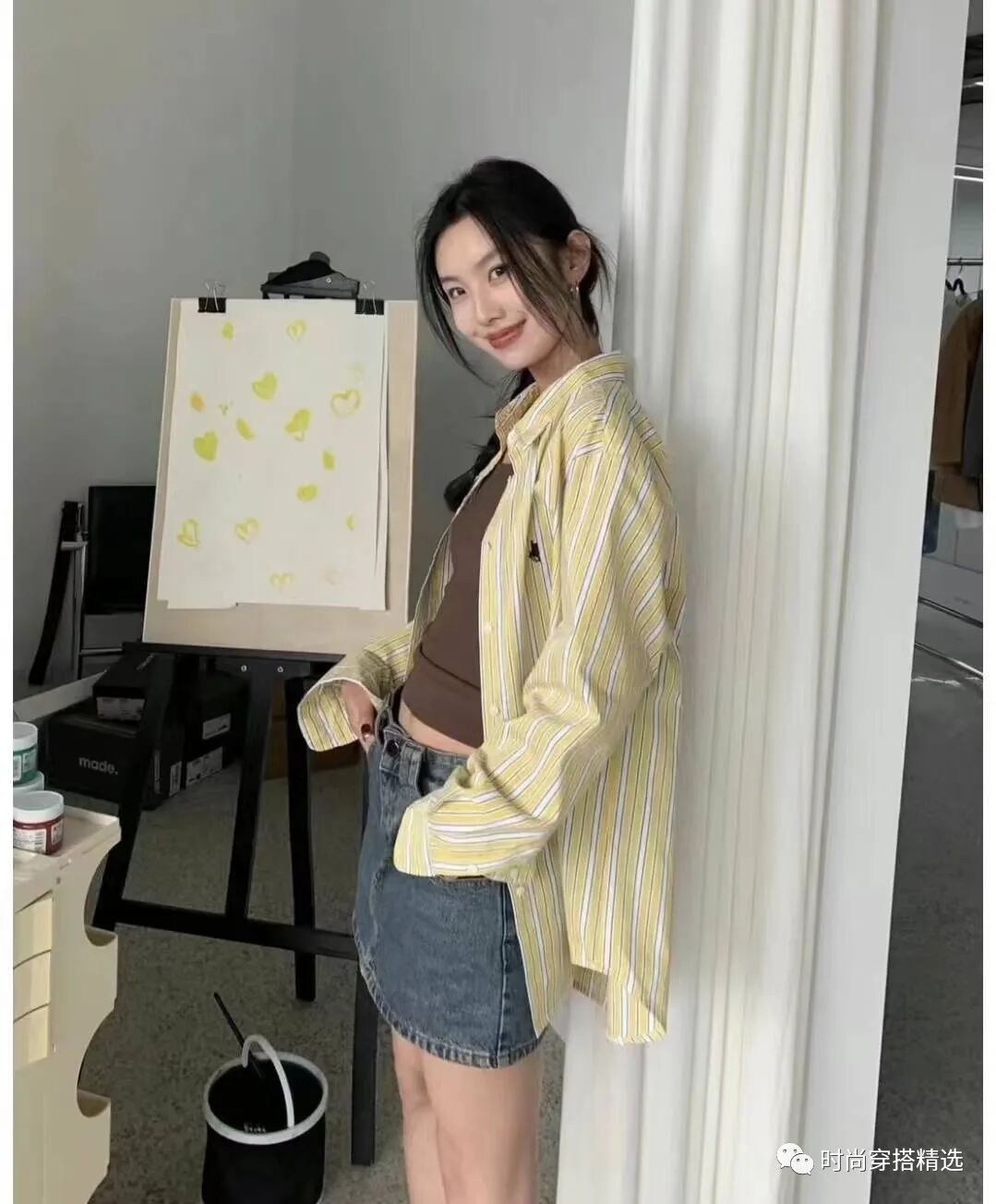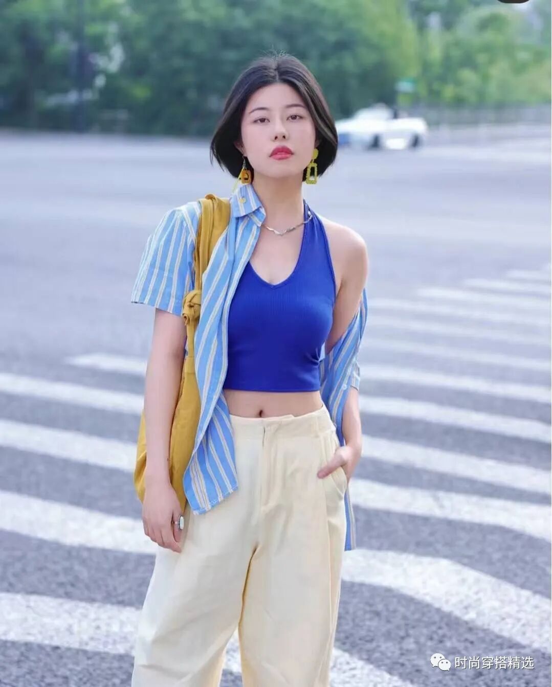 日常穿搭中,我们可以换个思路,学习时髦的欧美博主,提高穿搭的露肤度,打破严肃感,让look更加时髦吸引眼球。这样的搭配方式高妹矮妹都能穿,经典的“上长下段”搭配公式最适合春夏季节。叠穿搭配的中间层最关键,也最能体现穿搭细节,即使是最基础的条纹衬衫,也能通过叠穿打造层次感。