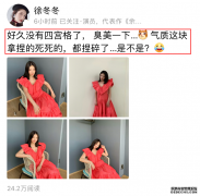7月1日,徐冬冬在网上晒出了4张私服照,并配文“好久没有四宫格了,臭美一下,气质这块拿捏得死死的,都捏碎了,是不是?”,4张私服照中徐冬冬只穿出了一条红裙,这条红色的长裙穿在徐冬冬的身上很显嫩,徐冬冬晒出的4张私服照引起了网友的关注,有网友留言...